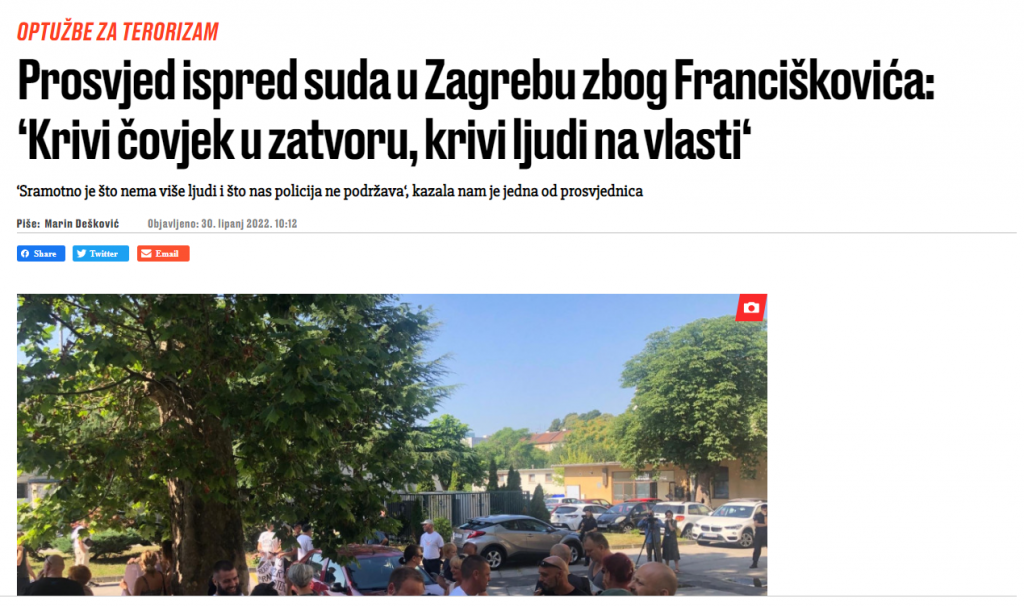 30.06.2022. u zgradi Općinskog kaznenog suda u Zagrebu na adresi Ilica 207 održana je sjednica optužnog vijeća za Marka Franciškovića, Natka Kovačevića i Markovu suprugu.