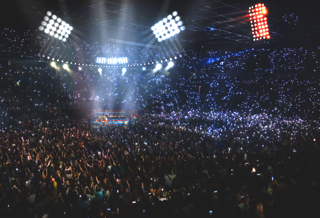 Nabrijana i mirisom krvi pomalo već izluđena masa očekuje dolazak boraca i početak meča. Uz svjetlosne efekte i konfete, prvo se pojavljuje izazivač… U ogrtaču s velikim znakom lava u šesterokutu, s lisicama na rukama i lancima na nogama, u pratnji pravosudne policije.