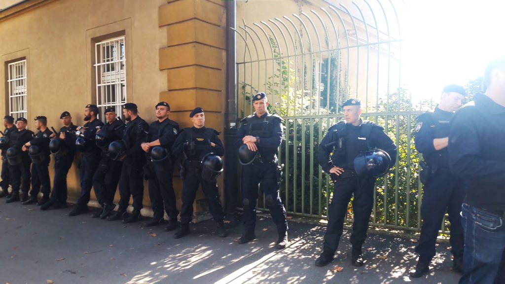 Ispred zgrade suda postrojeno je stajala skupina “strašnih” specijalaca koji su za režimske medije glumili ozbiljnost i opasnost od još strašnijeg terorista i njegovih sljedbenika.