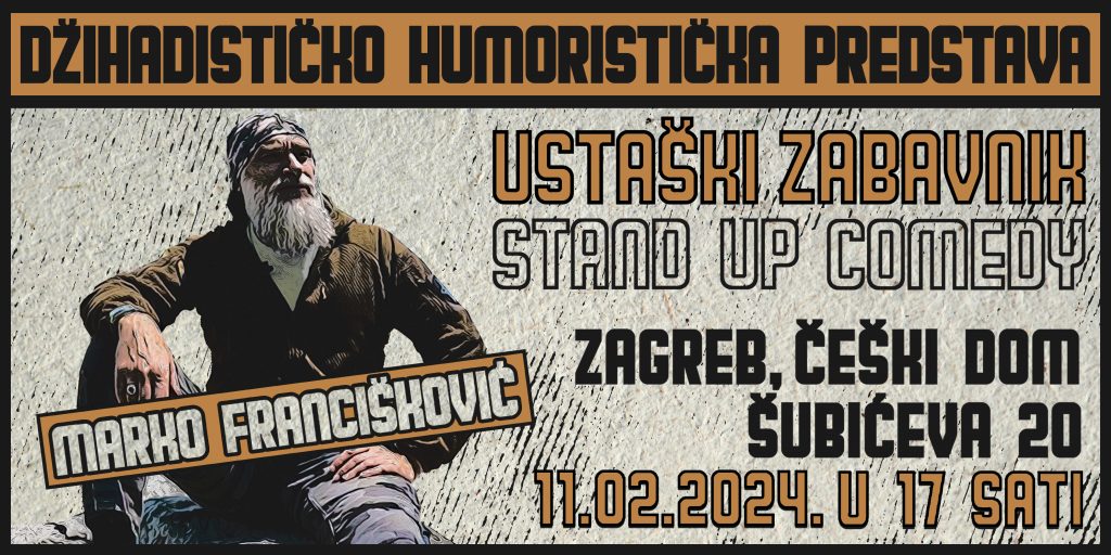 Službeno najavljujemo stand up comedy predstavu Marka Franciškovića koju prikladno prevodi na hrvatski kao “Ustaški zabavnik”.